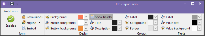To change the colors of the form you have to select the desired color in each area, in the lower part of the configuration box of each area the name of the area to which it corresponds appears.